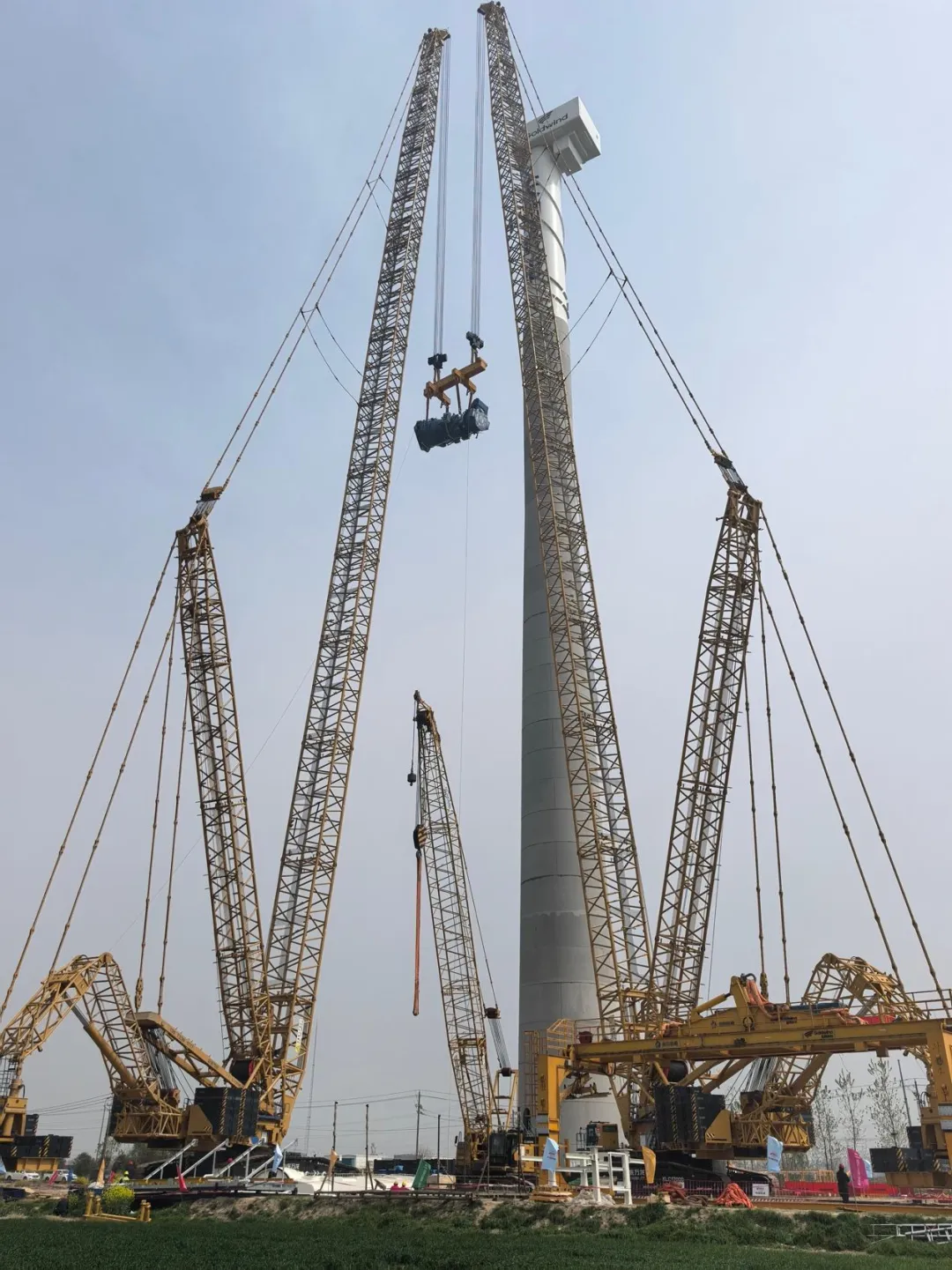 国内单机容量最大陆上风电机组成功吊装