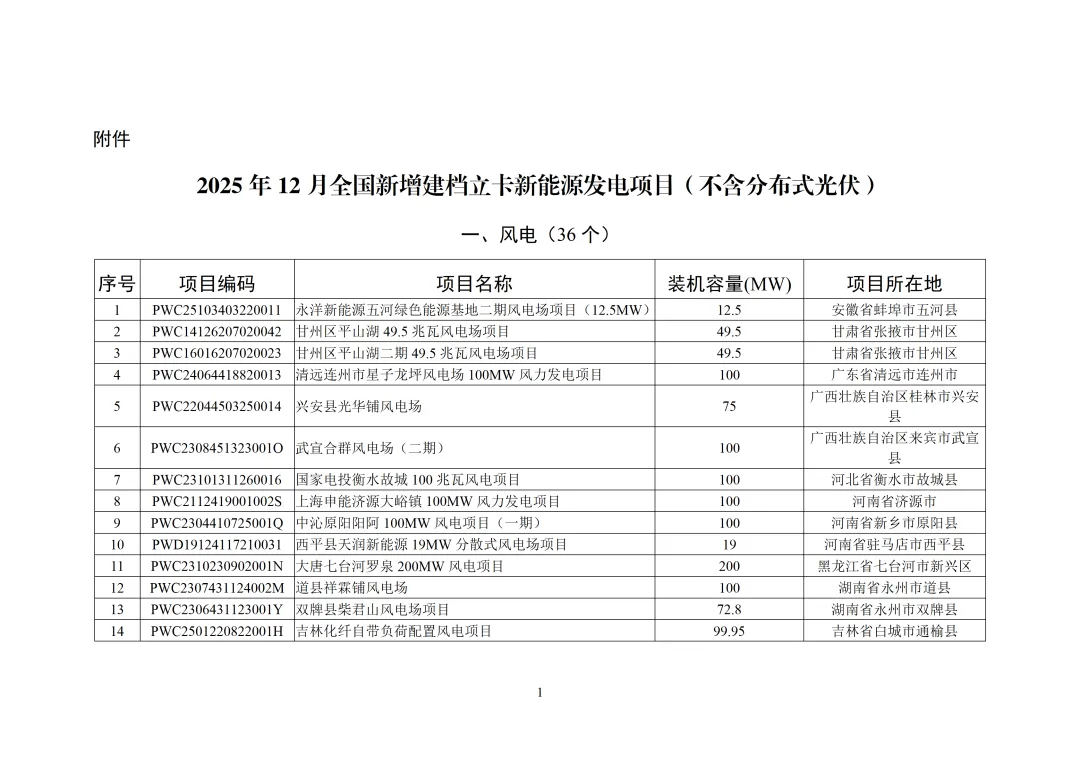 附件:2025年12月全国新增建档立卡新能源发电项目(不含分布式光伏)