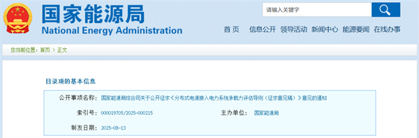 国家能源局:就《分布式电源接入电力系统承载力评估导则(征求意见稿)》公开征求意见
