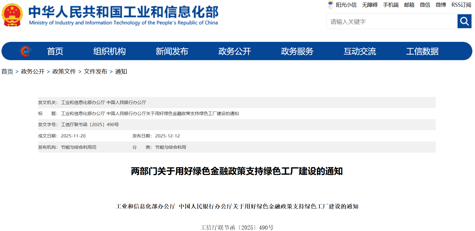 《关于用好绿色金融政策支持绿色工厂建设的通知》发布