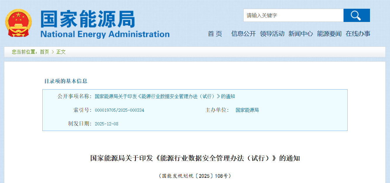 内容摘要:近日,国家能源局发布《能源行业数据安全管理办法(试行)》。文件提出,能源数据处理者开展数据处理活动,应建立健全数据安全管理制度,明确数据全生命周期各环节的管理要求;定期组织开展能源行业数据安全知识和技能教育培训。能源行业重要数据、能源行业核心数据的处理者应建立数据安全工作体系,加强人员和经费保障,并配合有关部门开展监督检查工作。