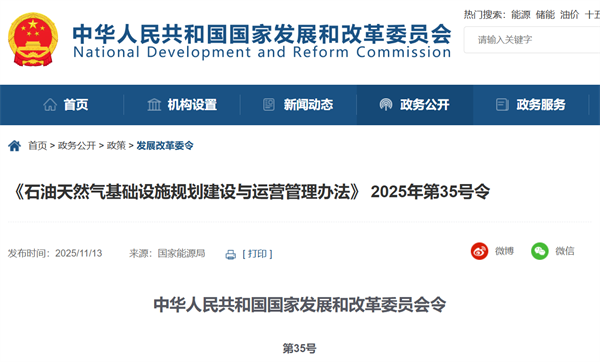 《石油天然气基础设施规划建设与运营管理办法》明年1月1日起施行