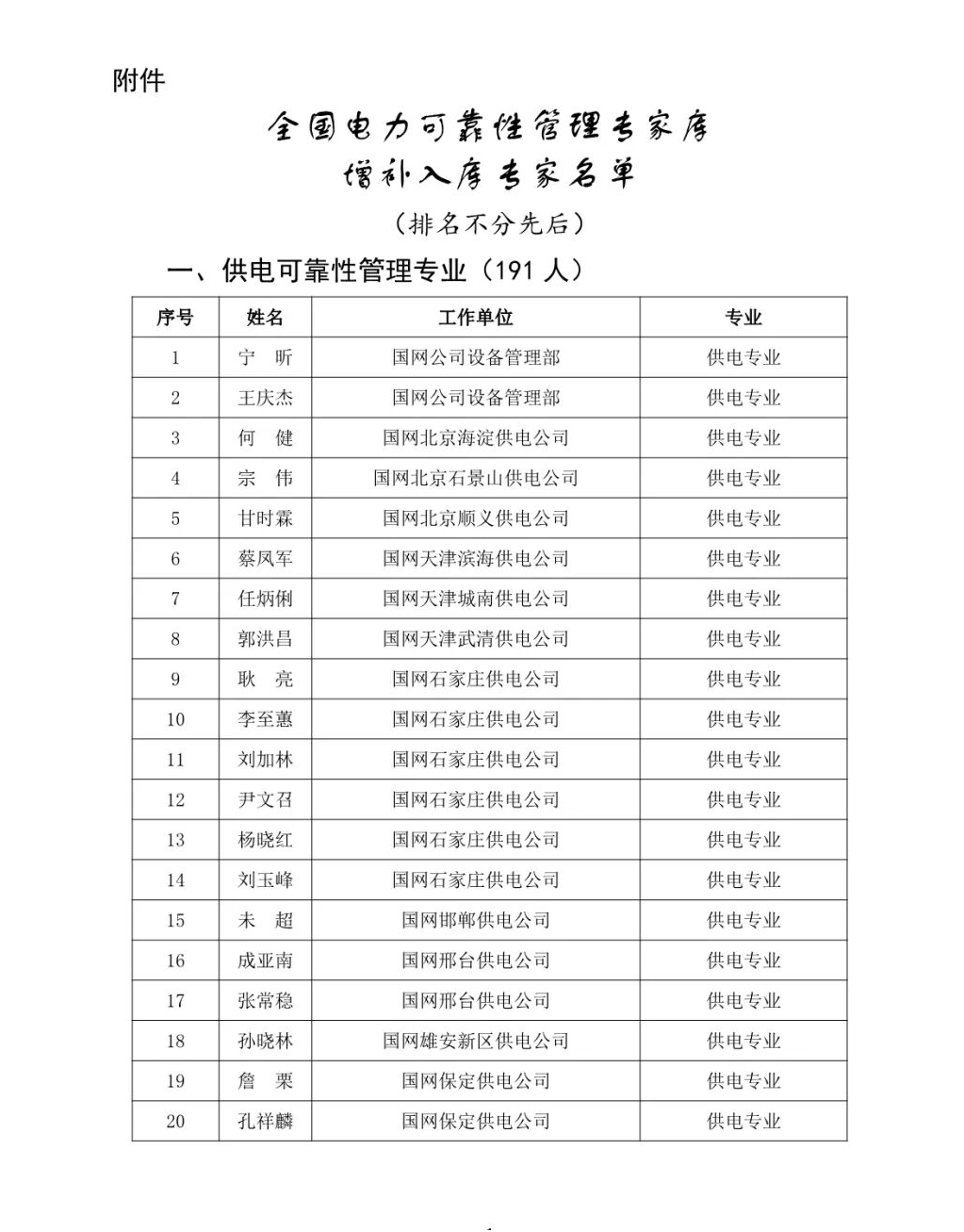 国家能源局:公布《全国电力可靠性管理专家库增补入库专家名单》