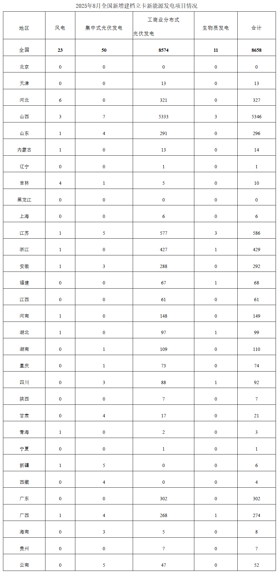 国家能源局:8月全国新增建档立卡新能源发电项目8658个