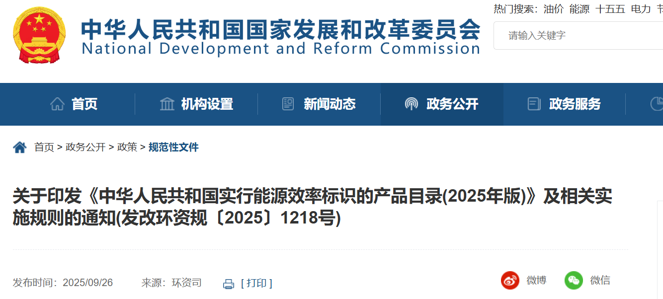 《中华人民共和国实行能源效率标识的产品目录(2025年版)》及相关实施规则的通知