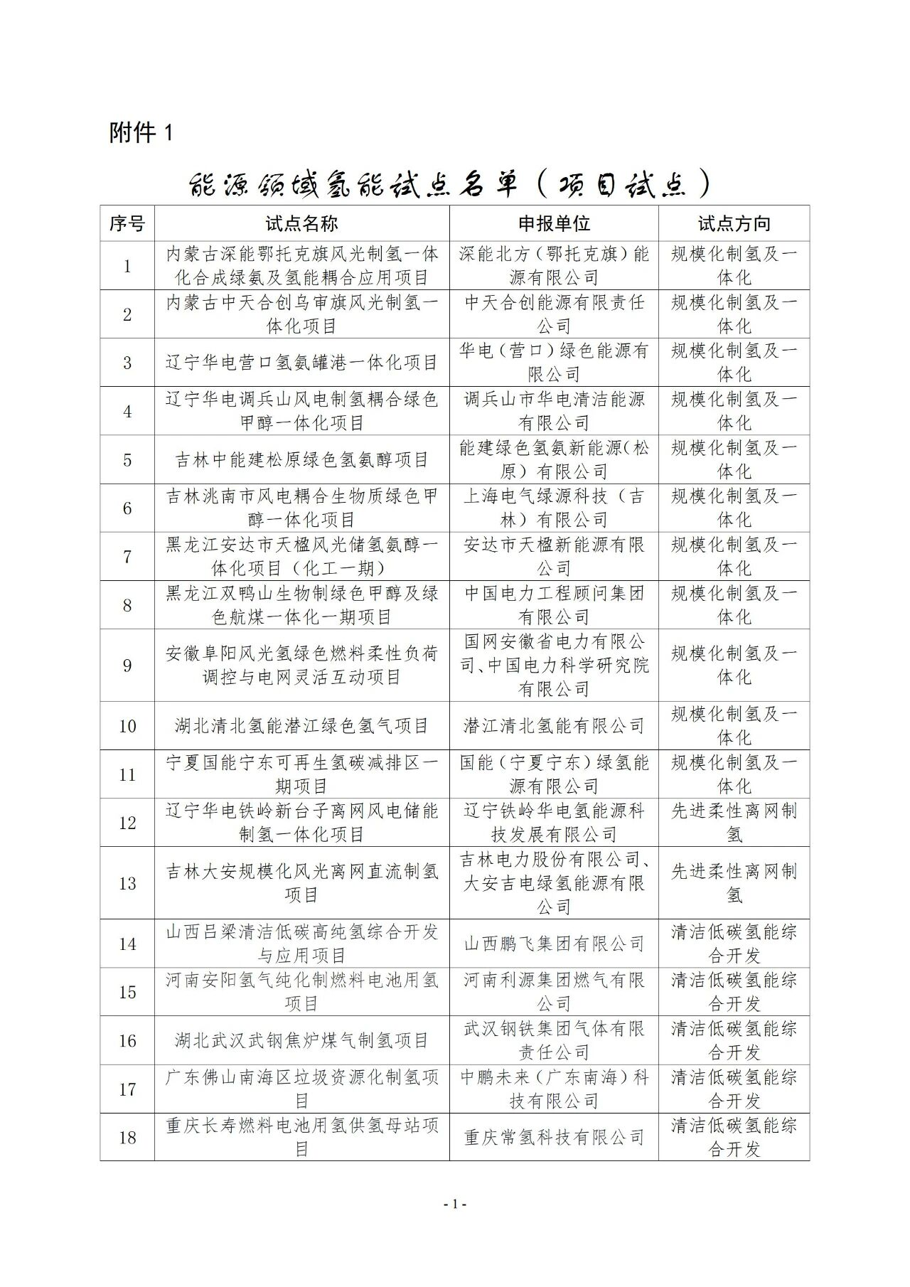 国家能源局:公示第一批能源领域氢能试点名单
