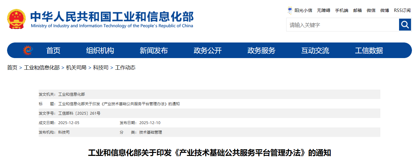 工信部:发布《产业技术基础公共服务平台管理办法》