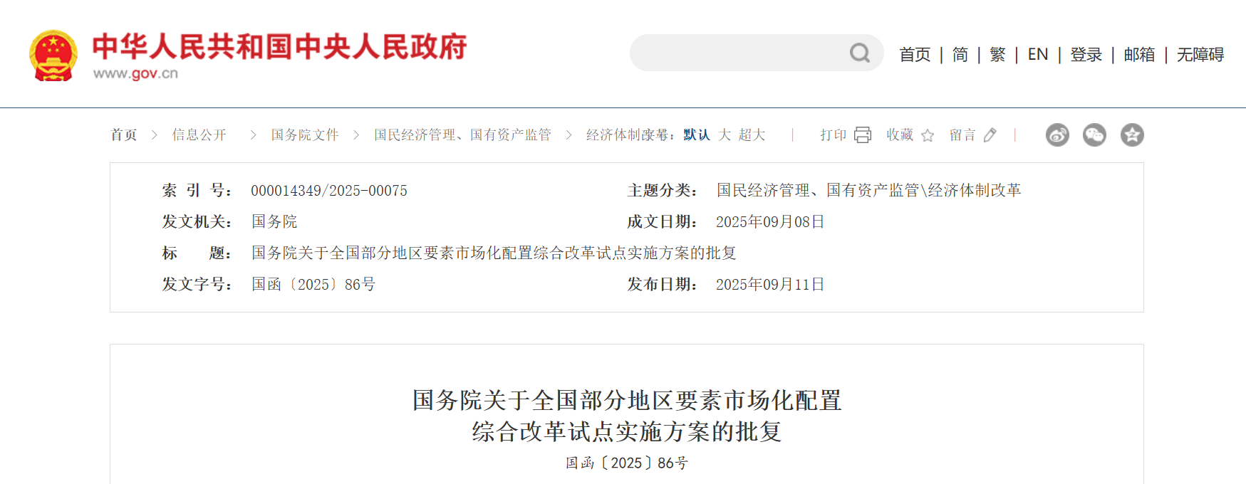 国务院批复同意自即日起2年内开展北京城市副中心等10个要素市场化配置综合改革试点。