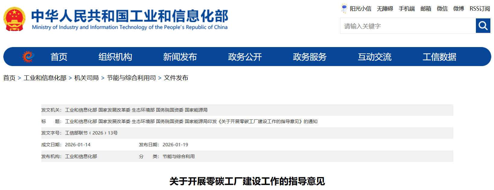 为坚持以习近平新时代中国特色社会主义思想为指导,深入贯彻习近平生态文明思想,全面贯彻党的二十大和二十届历次全会精神,落实国务院办公厅《制造业绿色低碳发展行动方案(2025—2027年)》,深挖工业和信息化领域节能降碳潜力,带动重点行业领域减碳增效和绿色低碳转型,培育发展新质生产力,工业和信息化部、国家发展改革委、生态环境部、国务院国资委、国家能源局共同研究制定了《关于开展零碳工厂建设工作的指导意见》。现印发给你们,请结合实际,认真贯彻落实。