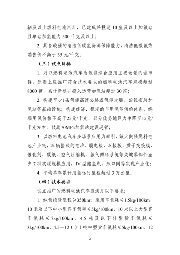 为贯彻落实党中央、国务院决策部署,按照《氢能产业发展中长期规划(2021—2035年)》《加快工业领域清洁低碳氢应用实施方案》有关工作部署,以多场景规模化应用带动成本降低,助力氢能技术装备创新突破,推动氢能产业高质量发展,工业和信息化部、财政部、国家发展改革委(以下统称三部门)组织开展氢能综合应用试点工作。有关事项通知如下: