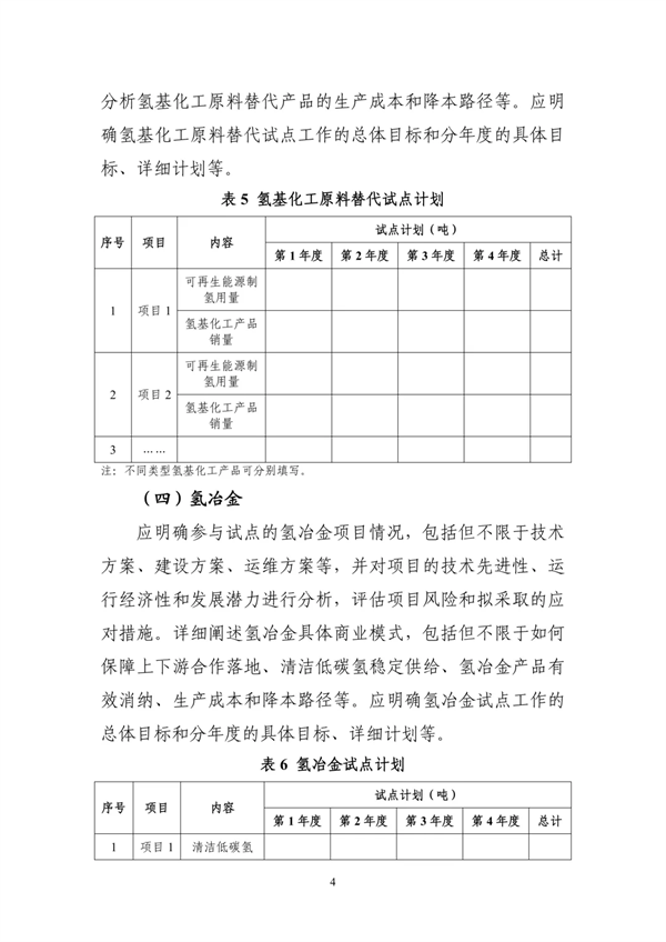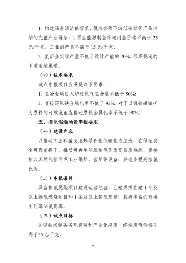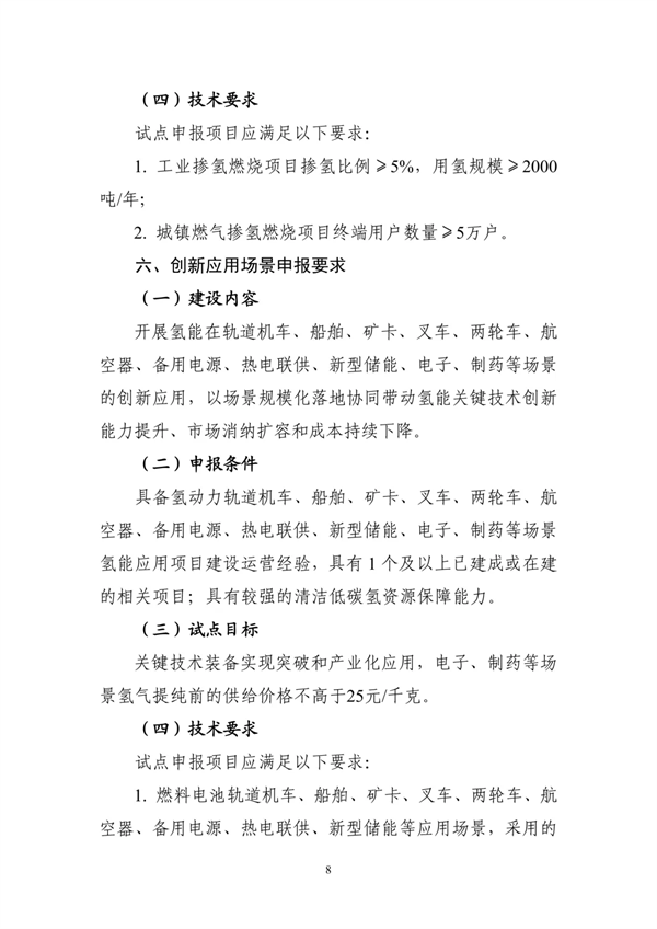 1. 氢能综合应用试点申报要求和基础目标