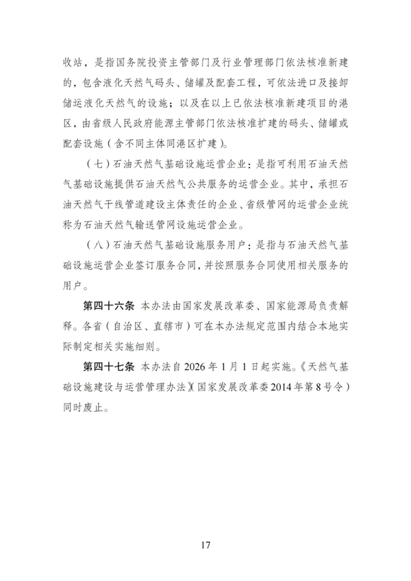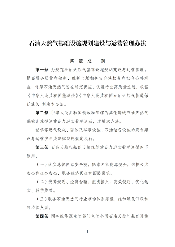 《石油天然气基础设施规划建设与运营管理办法》已经2025年10月28日第24次委务会议审议通过,现予公布,自2026年1月1日起施行。