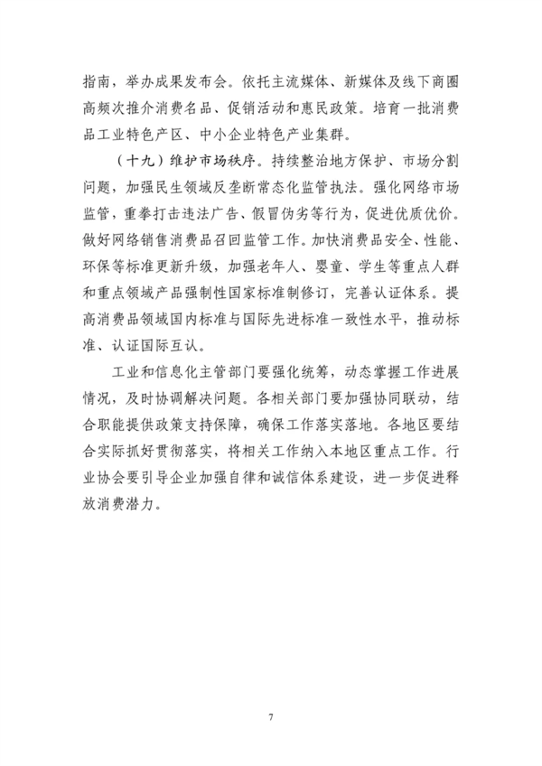 为贯彻落实党中央、国务院关于大力提振消费的决策部署,工业和信息化部等六部门制定了《关于增强消费品供需适配性进一步促进消费的实施方案》,经国务院同意,现予印发,请认真组织实施。