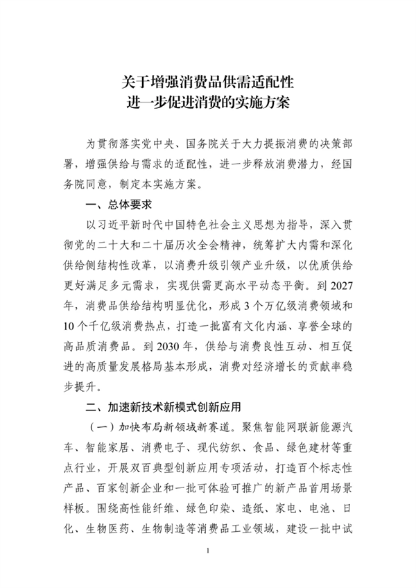 《关于增强消费品供需适配性进一步促进消费的实施方案》发布